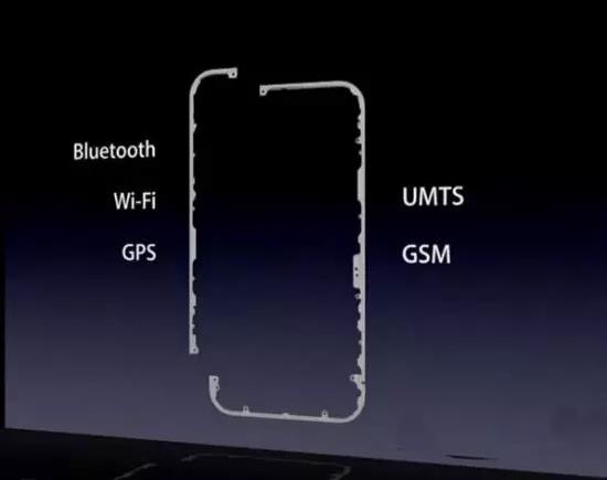 3G/3GS后盖就是个大塑料,天线不在外壳上,4/4s用的是侧边外框做天线。为确保信号稳定,iPhone 5金属后背采用三段式设计,上下两部分是陶瓷玻璃,这也是为防止金属屏蔽电磁波,外观设计必须做出的妥协。