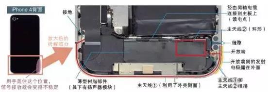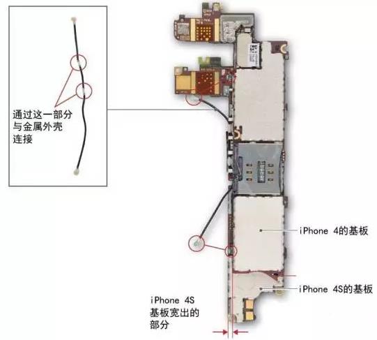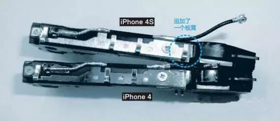 iPhone 4的构造在用手堵住机身左侧面的黑色缝隙部分时,供电点与接地就会短路。而iPhone 4S在强化接地的同时,局部变更了内部构造,由此解决了接收灵敏度下降的问题。