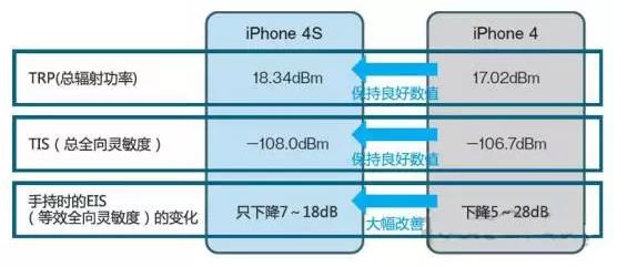 iPhone4、iPhone4s辐射功率、灵敏度测试数据对比