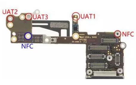 上部天线包括UAT1、UAT2、UAT3各1个馈电端口和NFC的2个端口。