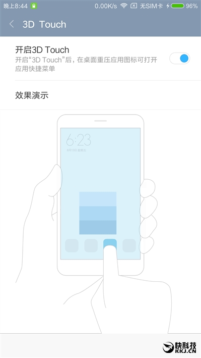 4GB+128GB高配版还支持压感操作,和华为的有些接近(包括仅限高配版支持),用力按图标即可弹出快捷操作菜单。实测弹出速度还是挺快的,只要用力按下图标即可。