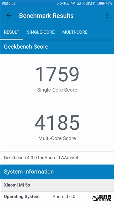 GeekBench 4 CPU单线程、多线程分别得到了1759、4185分,GPU计算得到了7287分,同样明显高于骁龙820,但略低于满血的骁龙821,分别少100、200、200分左右。