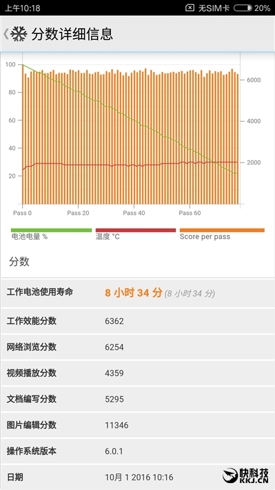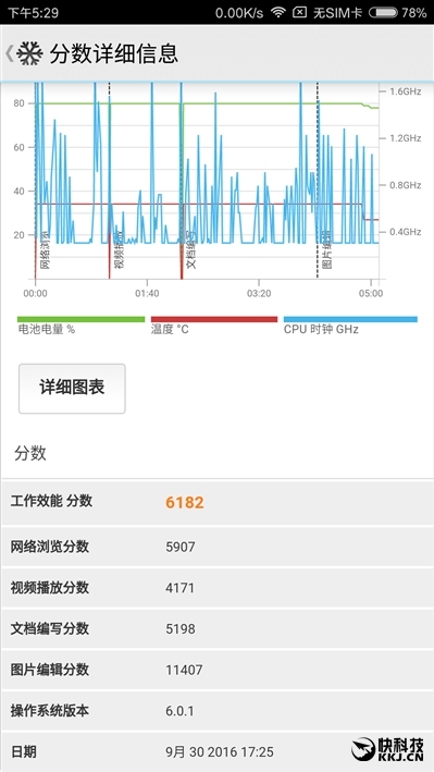 PCMark得到了6182分,和满血骁龙821不相上下,说明整机性能其实没啥明显不同。