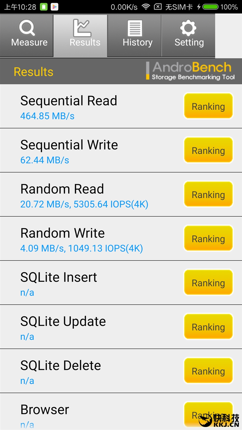 存储性能不太正常,虽然用上了UFS 2.0,但性能很不均衡,持续读写可以高达惊人的630MB/s,持续写入115MB/s也可以接受,但随机读写分别只有5300、1000 IOPS左右。不知道是不是工程机的缘故,不过还好在实际使用中,并没有遇到什么卡顿不流畅的情况。