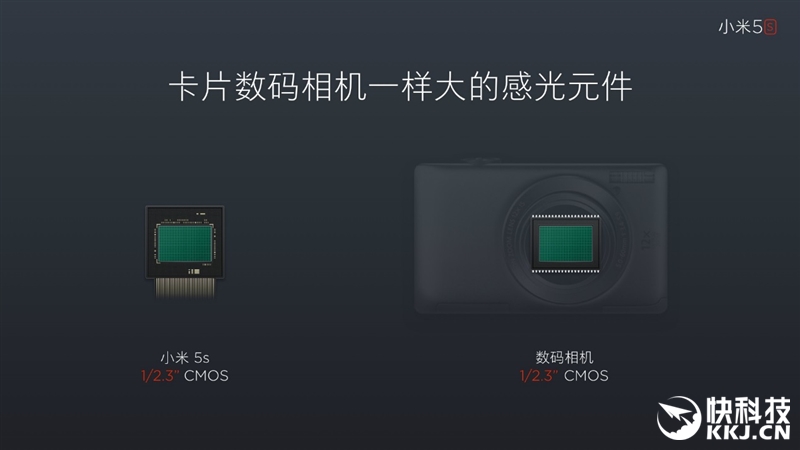 小米5S把拍照也列入了黑科技范畴,因为它使用了一个1/2.3英寸的超大感光元件,已经和卡片数码相机处于同样的级别。小米称之为超感光相机,还起了个别名“暗光之眼”,声称在逆光、暗光下的拍照效果更佳。