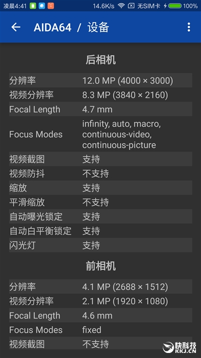 后置可以拍摄4K视频。前置只有400万像素,规格比较一般。
