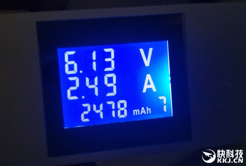 在电量55%的时候检测,充电电压超过6.1V,电流约2.5A,功率大于15W,效率还可以。