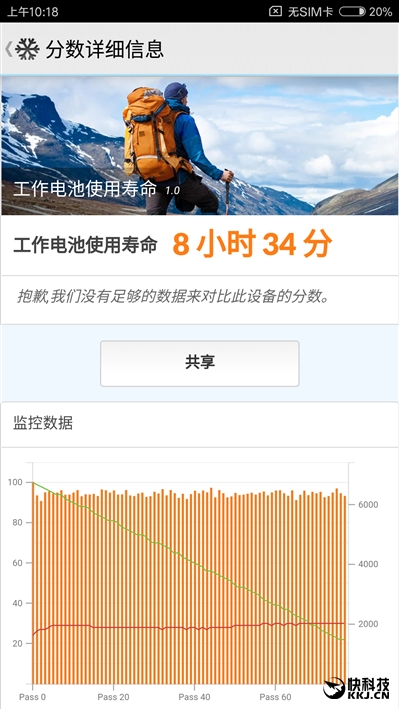 安兔兔电池续航测试(屏幕亮度100%),100%电量到80%坚持了约1小时25分钟,全程能够使用5个多小时。