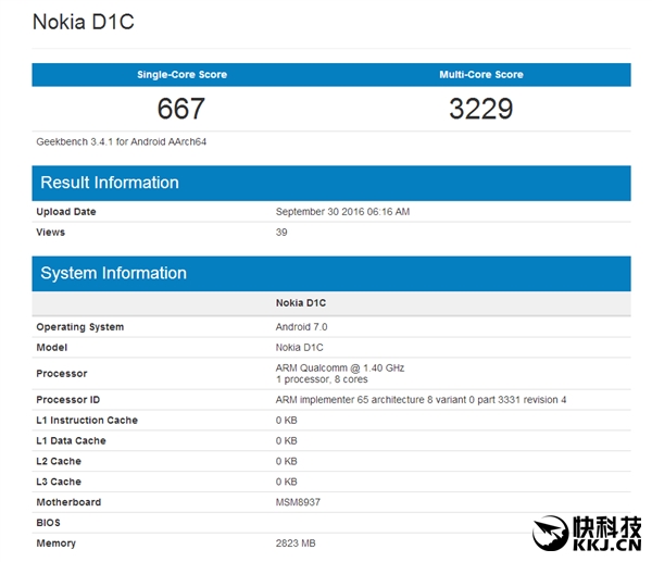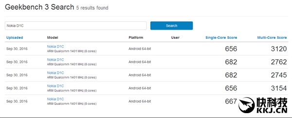Lumia死了,黑莓死了,但诺基亚还活着。近日,GeekBench数据库中出现了一款名为“D1C”的诺基亚新机。