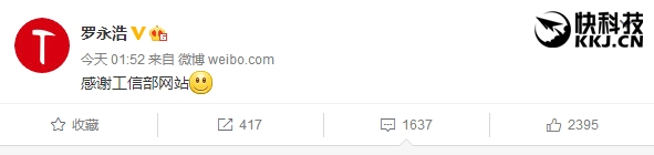 对于“提前偷跑”,老罗凌晨回应,“感谢工信部网站”,这意思应该就是真的了?