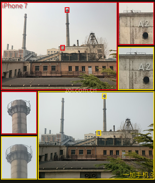 样张可见iPhone 7相对一加手机3来说大幅偏黄,但反倒是iPhone 7更为接近肉眼所见。不过相信大部分人都不会喜欢上面的iPhone样张,明显下面的一加3样张看起来更好看,细节解析力又是一加3胜利。