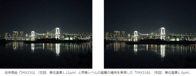 IMX318(右)与IMX230(左)夜拍画质比较(图片来自索尼日本)