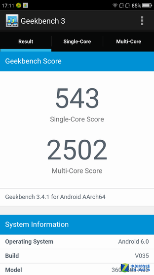 我使用安兔兔6.2.1和geekbench 3对其进行测试,结果显示其安兔兔跑分3.7万,在新版本安兔兔调整评分系统后,这个分数属于中端处理器的范畴,单多核运算能力一般。