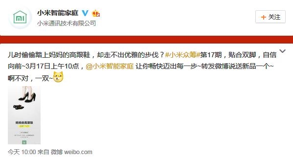 小米智能家庭官方微博现在已经贴出了海报,表示“儿时偷偷踏上妈妈的高跟鞋,却走不出优雅的步伐?”而且表示新产品将“贴合双脚,自信向前~”