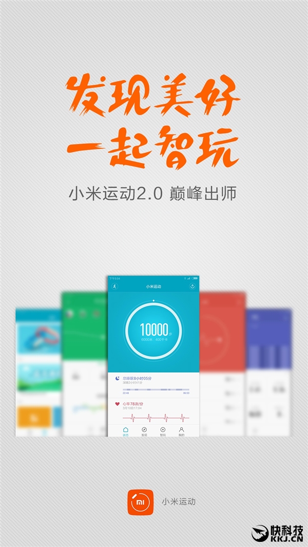 从官方给出的截图来看,小米运动2.0版延续了之前的色块布局,但主页面的UI有所调整,光感版的心率显示更加直观,底部有四个选项卡,似乎还加入了商城页面。