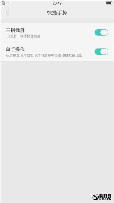 如果你觉得5.5寸屏幕依然太大,只需要触控手机屏幕的右下或左下向屏幕中心位置滑动即可调出该机的单手操控模式,启用此模式后屏幕中会出现一个缩小版的手机屏幕,这样在单手操作手机时非常方便,在一定程度上弥补大屏手机在单手操控方面的不足。