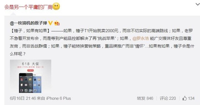 很多人评价罗永浩说,虽然标榜自己的做机之路为“理想主义者的创业故事”,但做的事情很不理想主义,于是老罗用两年的时间亲自验证了这样的评论。