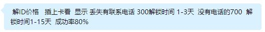 如果手机被机主登记为丢失模式,老板承诺三天之内就可以搞定,收费也只有300块。
