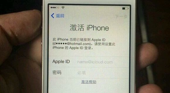 2、激活模式,手机只显示:请使用Apple ID登陆此iPhone。(此时屏幕上会出现注册邮箱)。