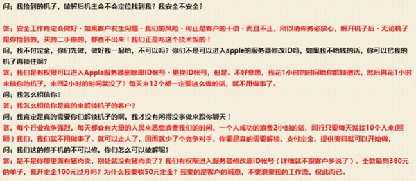 然而,事情还远没结束。老板会和你说:“刚刚在解锁的时候我们被苹果注意到了,有可能会承担刑事责任,现在需要你给我们打600块押金。如果十分钟后系统恢复正常,我们再还给你押金,然后再给你密码。”