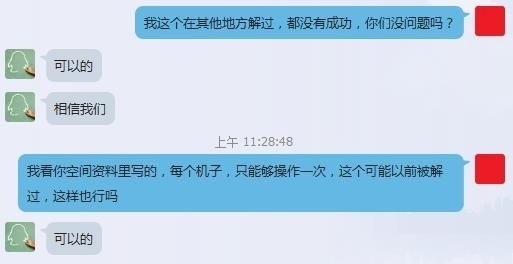 雷锋网记者通过QQ和一位店主建立了联系,对于预先缴纳定金,老板是这样解释的:“虽然我可以帮你解开,解开之后如果你不付钱,我也可以再把你的手机锁定。但是这样来回要花费我两个小时的时间,如果你不预付定金,我是不会陪你玩的。”
