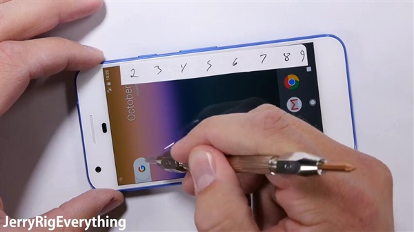 国外JerryRigEverything团队分享了针对Pixel手机的极限测试视频,包括抗刮花、高温烤烧以及抗弯折测试。