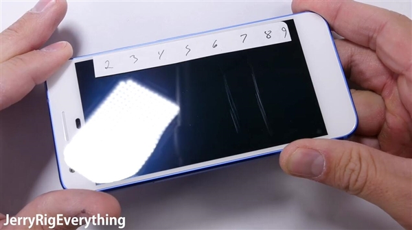 结果显示,除了屏幕因为覆盖有最新一代大猩猩玻璃而能够抗击6个硬度一下的尖锐物划伤之外,Pixel的背部玻璃、金属壳、指纹识别以及侧键都非常容易被美工刀之类的坚硬刮花(普通的钥匙对金属机壳无害),因此用户需要对Pixel的背部进行特别的保护。