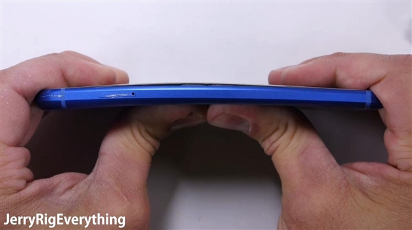 而在弯曲测试当中,Pixel的表现也非常一般,当从背壳向外用力时可以看到明显的屏幕翘起,仿佛下一秒就会“嘎嘣”断掉。而这也与Pixel追求机身厚度而采用超薄中框有直接关系。
