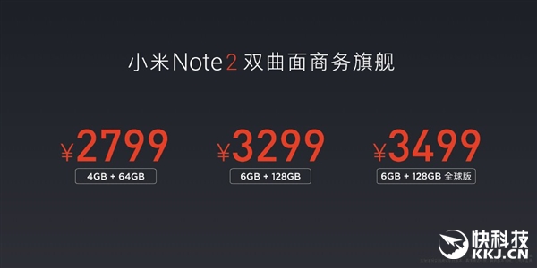 2799元!小米Note 2正式发布:双曲面屏超高颜值