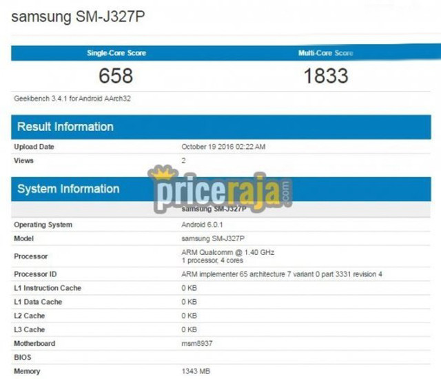 2017款三星Galay J3现身Geekbench(图片引自Priceraja)