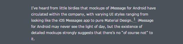 曝iMessage有安卓版(图来自daringfireball Twitter)
