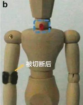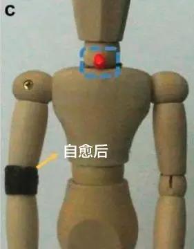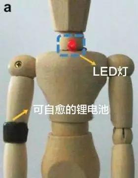 人体模型肘部佩戴可自愈的电池,通电后LED灯被点亮