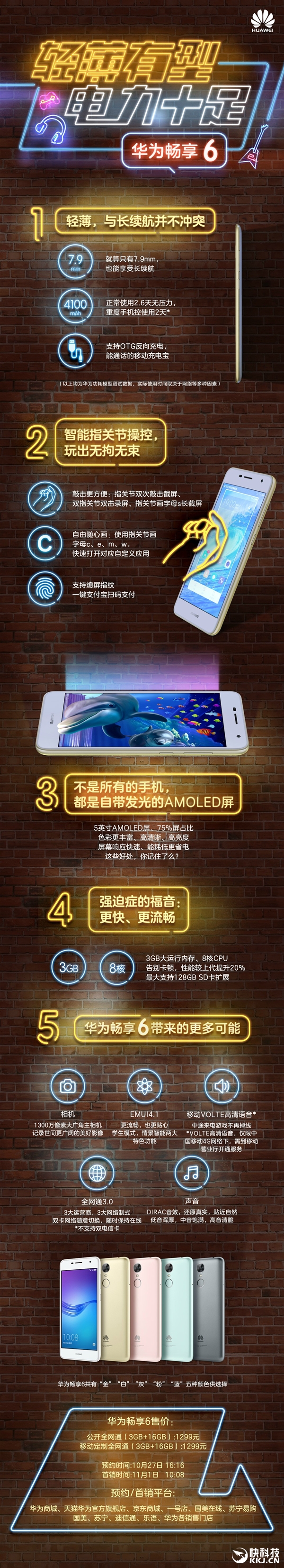 畅享6定价1299元(公开和移动定制全网通两个版本),即日起接受预约,11月1日10点08分开售。