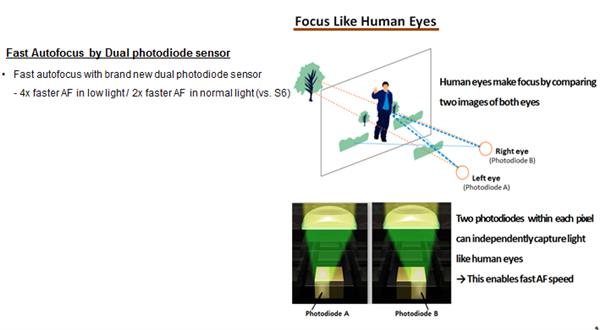 根据相关资料,Dual Photediode采用两个取像原件,就像人眼对焦一样,左右两个元件分别对物体对焦,以达到更高的拍照质量。