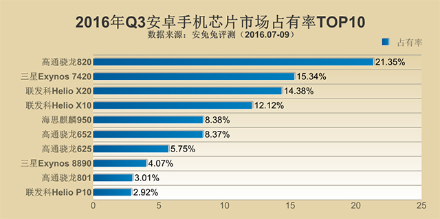 手机芯片哪家强?Q3安卓手机芯片分布和占有率TOP10