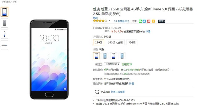 Flyme OS的入门体验 魅族魅蓝3官网599