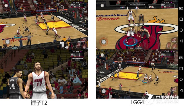 游戏方面我把前面测试提到的游戏都玩儿了一遍,大家都知道NBA2K15这款游戏对于性能要求极高,在两机上测试发现均无法实现完美流畅运行(默认画质),甚至在开球时两机都出现了超过1s的严重卡顿甚至画面停滞。游戏过程中倒是完全可以接受,偶尔轻微的“小卡”对游戏体验影响不大,整体来看这款游戏两机都算能玩儿。