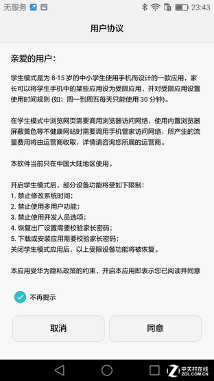 现在的小孩一出生就浸泡在各种数码产品的海洋中,成年人有一定的自控能力,但对于儿童来说则很容易因为玩手机出现些许问题——比如玩游戏成瘾甚至是浏览不健康网页。为此EMUI 4.1新增了学生模式,在这一模式下家长可以设置学生使用手机内APP的时长,并且无法修改时间、进入开发者模式甚至不输入家长设定的密码就无法下载APP,并且还可以通过关键字过滤的手法过滤有害信息。