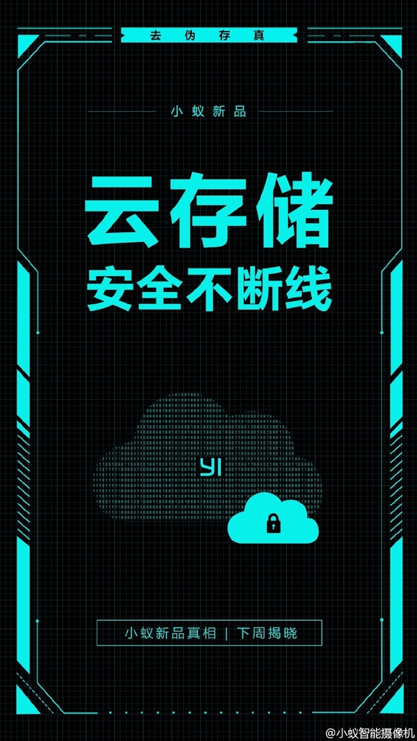 而现在,小蚁智能摄像机官微表示,下周小蚁新品将亮相,并且打出了“云存储,安全不断线”的宣传标语,难道是小蚁智能摄像机2?