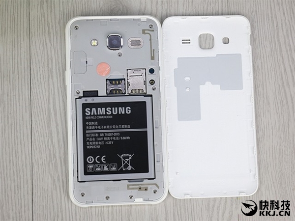 三星Galaxy J5搭载骁龙410处理器,塑料后盖,2600mAh可拆电池。