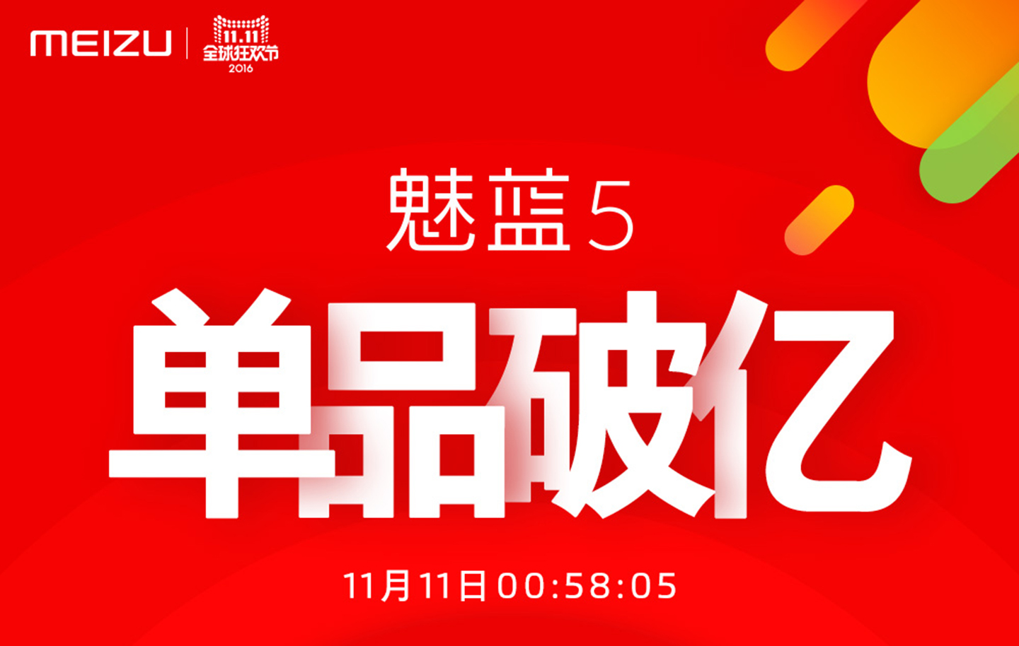 01:21,魅族科技再度公布战报:58分05秒,魅蓝5销售额突破1亿!