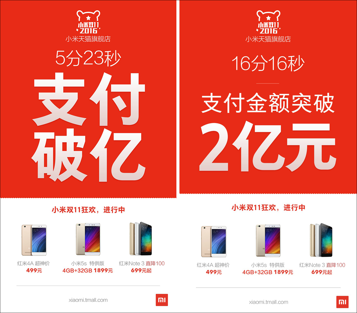 00:18,小米手机:16分16秒,小米天猫旗舰店支付破2亿!