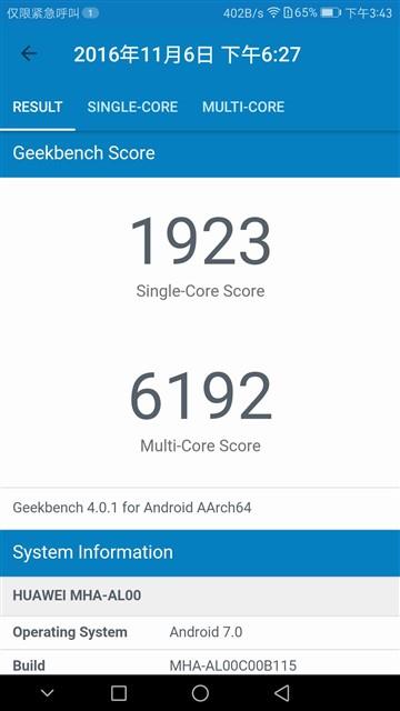 下面我们先从GeekBench 4以及GFXBench 4.0测试成绩方面看一下华为Mate 9的性能表现:
