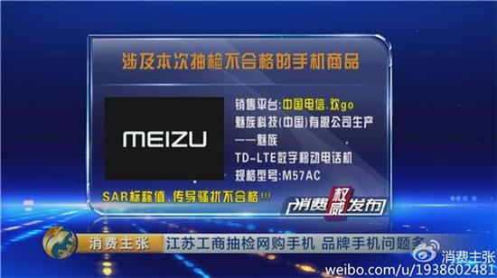 标称魅族M57AC的一款手机SAR标称值和传导骚扰不合格;
