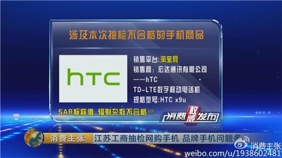 标称HTC的一款手机SAR标称值和辐射杂散不合格;