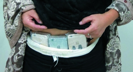 “看上去给人感觉就是一名普通妈妈,穿着宽松的长款上衣,提着一个手袋,没有其他任何行李。本来是轻装上阵应该轻松休闲,但她走路姿势扭捏僵硬,每个步伐都让人感觉很沉重吃力。”海关关员果断让其过金属探测门检查,果然猛烈报警,意味这名旅客身上藏有大量金属制品。