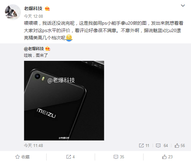 微博上爆料魅蓝X外形颜值超高