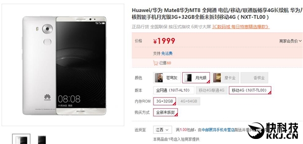 在一号店,有第三方卖家已经将Mate 8的价格下调到了1999元起,这应该是该机首次跌破2000元大关。而同样的版本,目前在华为官网是还是2699元起。