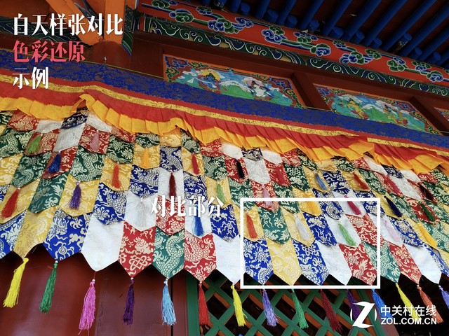 这里的对比样张来自呼和浩特的大召无量寺,选择同时存在天空与建筑物暗部的光比较大的场景,在保证所有天空不过曝的条件下对比建筑物暗部细节表现。