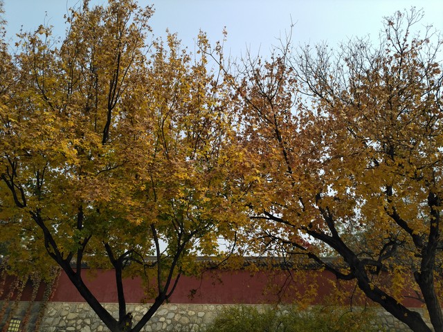 下面的场景秋天经常遇到,大面积的黄色对于相机白平衡调校来说也挑战不小,虽然大部分机型都会比较好的保留黄色,加深或者加入红色使画面整体色彩饱和度较高,不过还是有小部分机型违背了我们的意图,过度修正导致出现了不合时宜的蓝绿色。